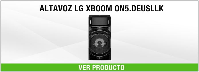 El primer modelo que os sugerimos es ideal para conectar tu altavoz a un equipo de música y disfrutar de la fiesta al máximo. Este Altavoz LG XBOOM ON5.DEUSLLK incorpora la tecnología Super Bass Boost capaz de generar un flujo de aire extra que consigue que los graves de tu música suenen más potentes y contundentes. Además, en este altavoz LG podrás conectar hasta tres smartphones distintos para ir cambiando de música. Y si conectas la luz trasera de tu móvil, esta parpadeará al ritmo de la música. ¡A baliar!
