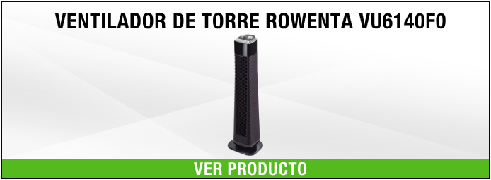 Otro modelo de gran calidad pero mucho más barato que el modelo anterior, es el ventilador de torre Rowenta VU6140F0 de 35 W de potencia. Este modelo nos ofrece un fresco óptimo en todo la estancia gracias a su gran difusión. Su temporizador permite programar el funcionamiento de este ventilador de torre silencioso Rowenta hasta 120 minutos. Por otro lado, este ventilador Rowenta ofrece 3 velocidades diferentes así como la posición de oscilación para aumentar el alcance del caudal de aire. Se trata de un ventilador silencioso porque en su nivel más potente alcanza un nivel de ruido de unos 59 dB.