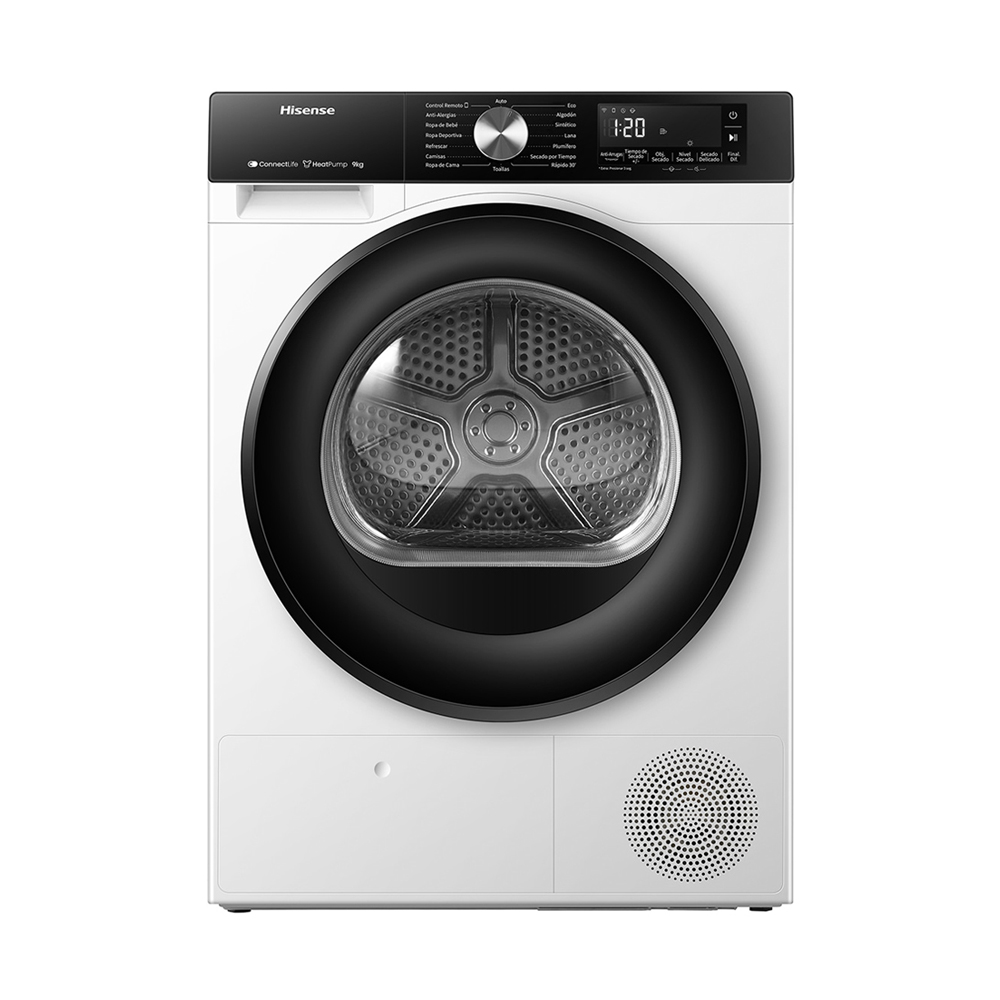 Este modelo de 7 kg utiliza tecnología de bomba de calor para un secado suave y eficiente, logrando una clasificación energética A++. Cuenta con un tambor de 83 litros e incluye 16 programas, como Xpress, Ropa de Deporte y Jeans. Sus paneles antivibración aseguran un funcionamiento silencioso. También tiene un sensor de humedad, filtro doble e indicador para vaciar el depósito, además de luz interior en el tambor.