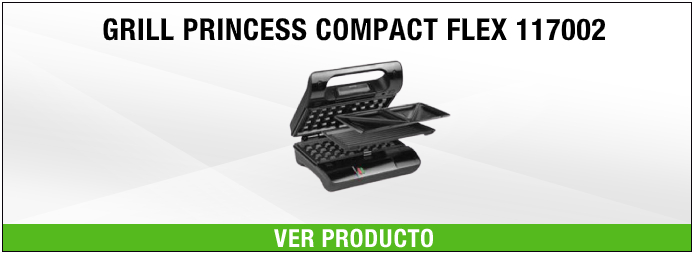 Otro modelo con mayor potencia a tener en cuenta es el grill Princess Compact Flex 11702. Esta sandwichera grill Princess también se trata de una sandwichera grill con placas desmontables. Por lo que podrás escoger entre las placas de grill, gofrera o sandwichera. Todo en un mismo electrodoméstico, lo que te permitirá disfrutar de la cocina sin tener que utilizar diferentes pequeños electrodomésticos.