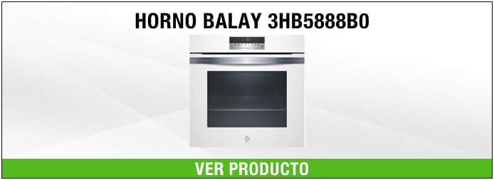 Si prefieres un buen tamaño, pero un precio más económico, este Hornos Balay 3HB5888B0 puede ser una buena opción. Se trata de un horno de Balay que incluye sistema pirolítico. Con su pirólisis ganarás tiempo y comodidad, además de ahorrar en casa gracias a su bajo consumo. Al conectar esta función, el horno se calentará a 500 ºC, eliminando así toda la suciedad, así como bacterias y gérmenes. Además, podrás escoger entre distintas intensidades en función del nivel de suciedad.
