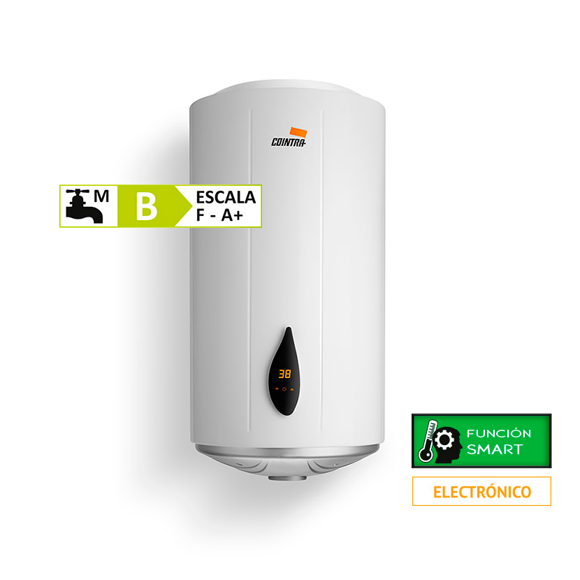 En Milar también contamos con este termo eléctrico Cointra TNC Plus de 50 litros de capacidad, que cuenta con muy buenas opiniones. ¿Por qué? Pues porque alcanza una temperatura máxima de 60 grados. Además, este termo eléctrico Cointra se puede colocar tanto en el interior como en el exterior del hogar. ¿Quieres saber más? Aunque es un modelo vertical, también existe la posibilidad de instalarse horizontalmente con las mismas prestaciones. Por lo que no tendrás problemas en instalar este termo eléctrico 50 litros Cointra.