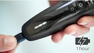 Pero ¿cuánto tarda en hacerlo la afeitadora facial Philips S1333/41 negro/rojo? El afeitado sin cable tiene una duración máxima de 45 minutos tras una carga de una hora. También tienes la opción de hacerlo con el cable u optar por una carga rápida de cinco minutos que te proporcionará la energía suficiente para poder afeitarte. El resultado: un acabado perfecto.