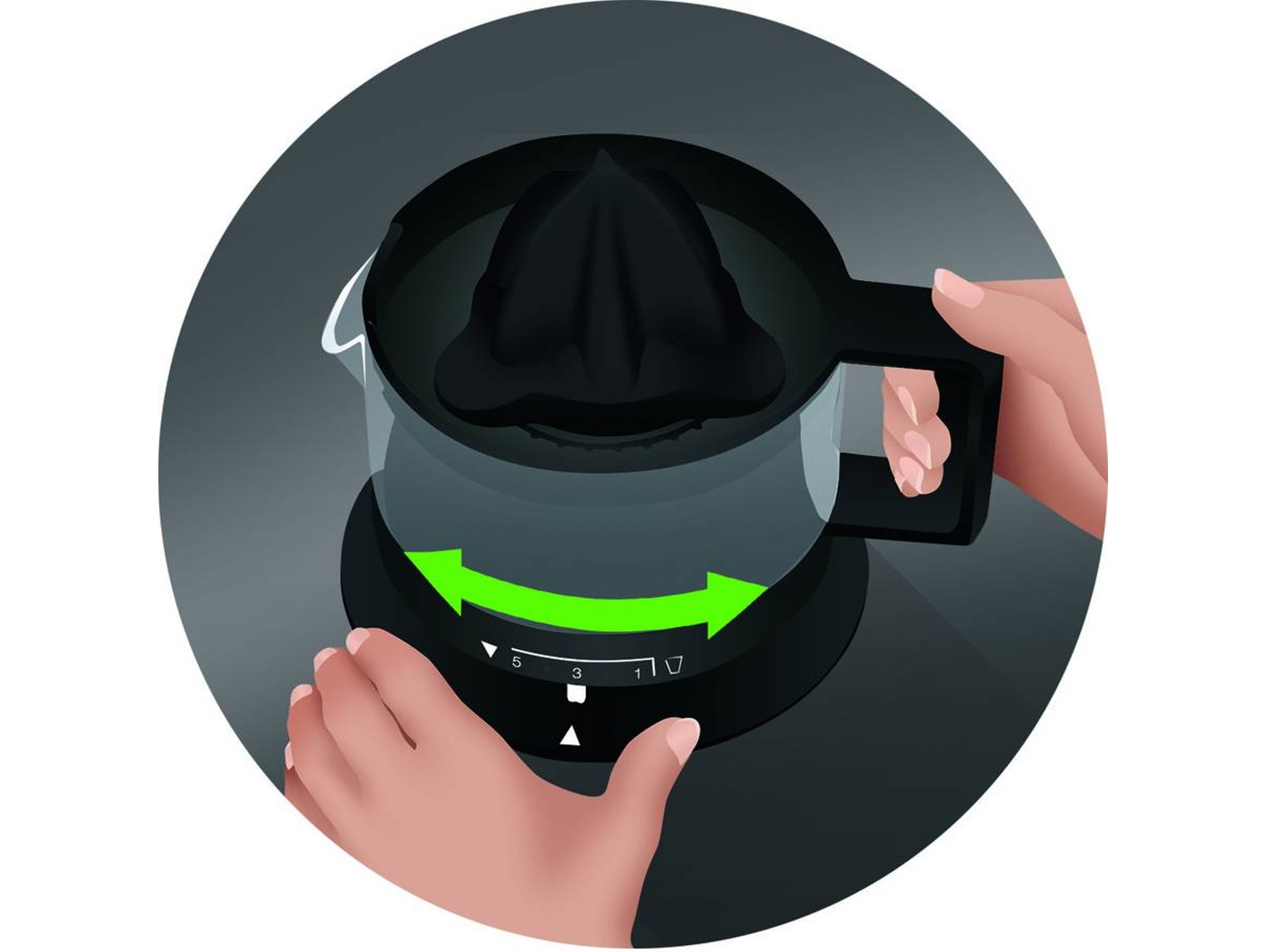 Este aparato cuenta con una potencia de 60W, suficiente para extraer el jugo contenido en una fruta de manera rápida y eficaz. Es muy fácil de usar, porque al contrario de lo que pasaba con los antiguos exprimidores no eres tú el que gira la fruta apretando contra la superficie. Por lo tanto, lo único que tienes que hacer es colocar la fruta haciendo algo de fuerza y será la estructura del aparato la que de vueltas para, a continuación, el jugo obtenido caiga por la parte trasera del aparato hasta un vaso.