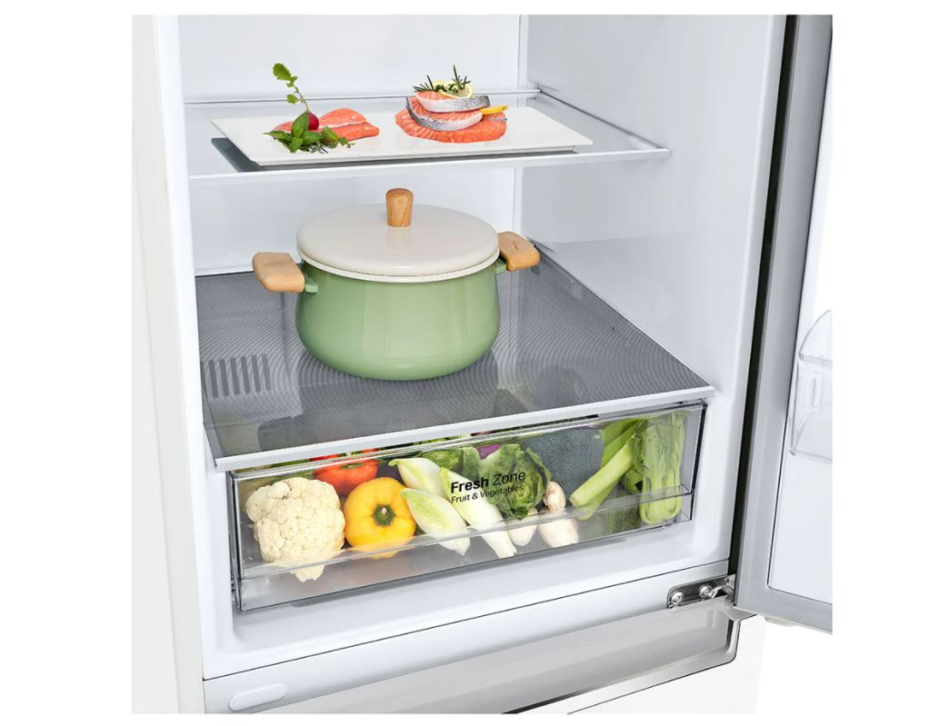 Si sientes a que tu antiguo frigorífico le falta capacidad de almacenaje, te presentamos el frigorífico LG GBP61SWPFN de color blanco. Disfruta de todas las ventajas de un frigorífico de tipo combi, aquellos que integran nevera y congelador en el mismo electrodoméstico, con capacidad extra para conservar todo tipo de alimentos. Todo ello haciendo un uso eficiente y consiguiendo un ahorro en el consumo total de la factura de la luz.