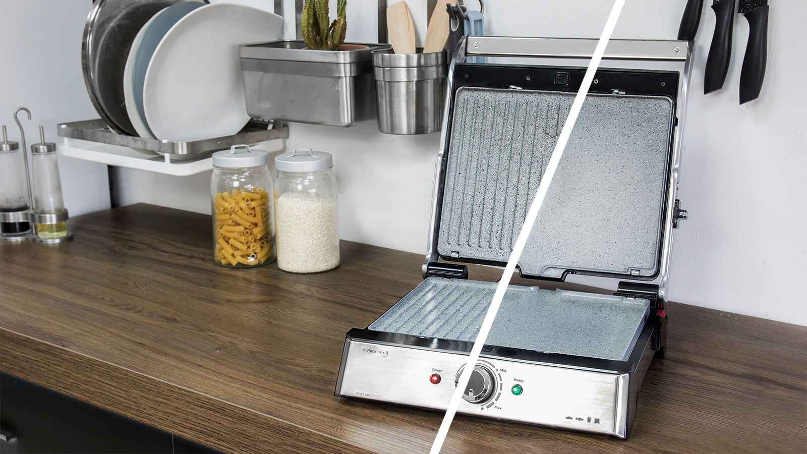 ¿Buscas equipar tu cocina con un mini electrodoméstico que haga tu día a día más fácil? Una de las mejores opciones es la parrilla eléctrica Cecotec Rock'nGrill Pro de 2000 W de potencia. Con este modelo Cecotec cocinarás una gran cantidad de platos de manera muy sana y suculenta.