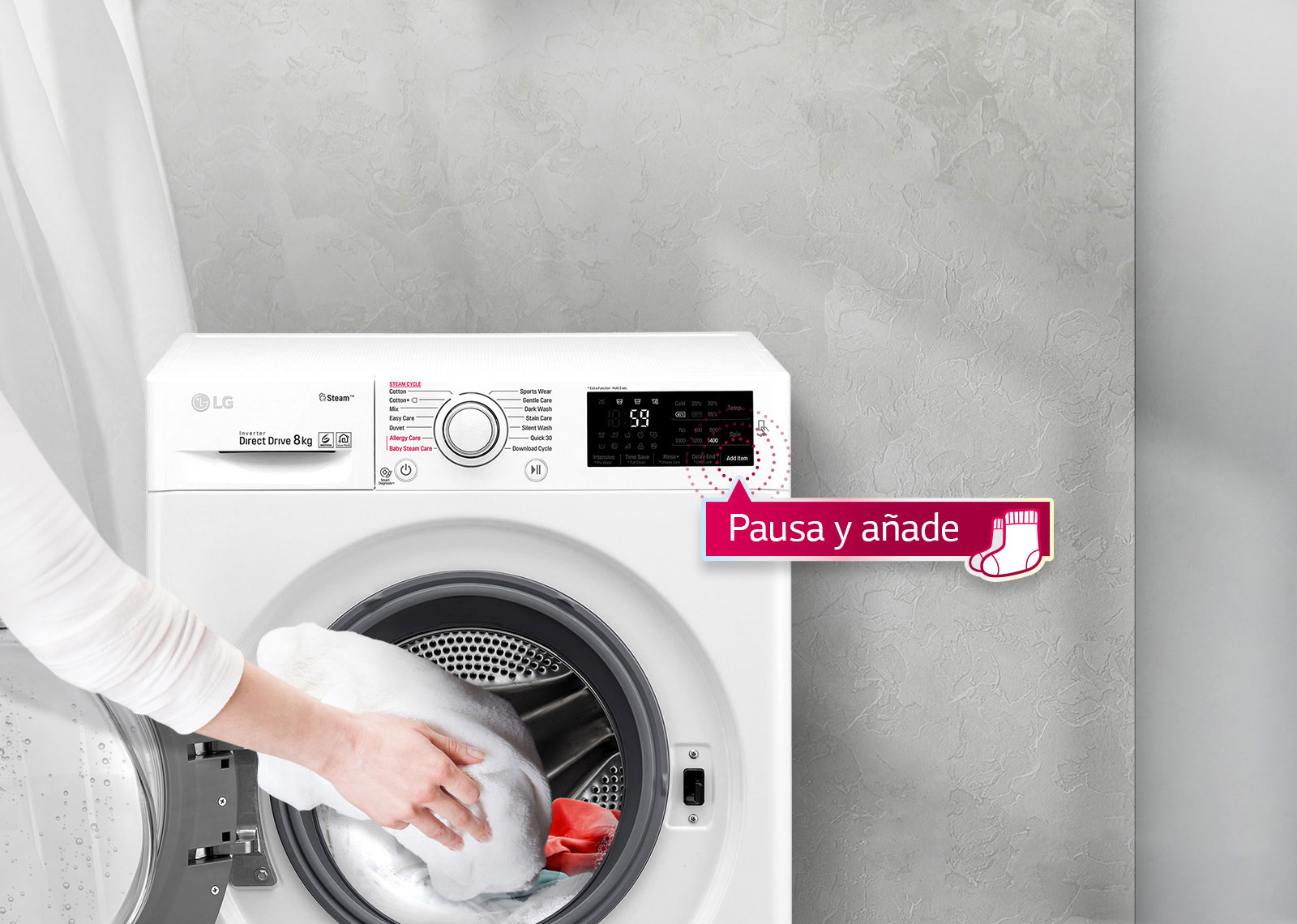 Esta lava-secadora LG F4DV5009S1W de color blanco, cuenta con una función Pausa + Carga mediante la cual se puede introducir cualquier prenda mientras tu electrodoméstico está en funcionamiento. Al activar esta función se puede abrir la puerta por completo para introducir carga de todos los tamaños sin que el ciclo de lavado tenga que parar, solamente se pausará en la misma fase del programa.